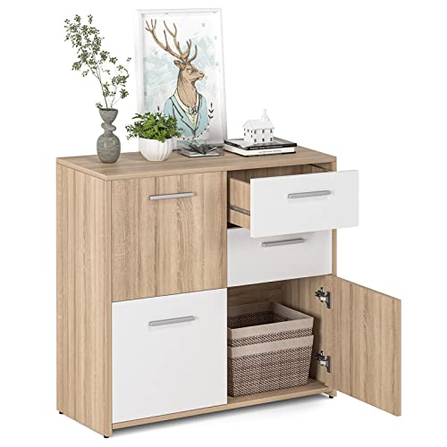 COSTWAY Commode Tiroirs Structure Solide Blanc Chêne 77x29.6...