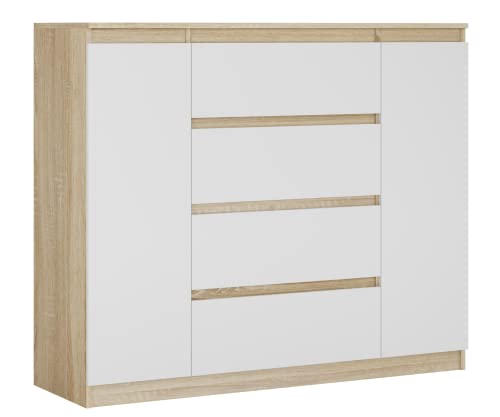 Living.com Commode Sonoma Blanc, 120x39x101 cm, Deux Portes,...