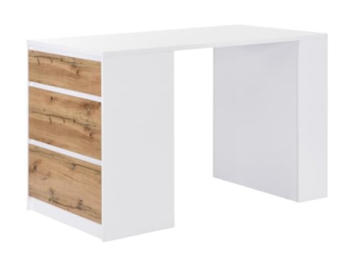 Dmora Bureau Minimaliste en Blanc et Gris, Tiroirs et Platea...