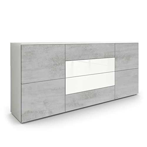 Buffet Vladon Rova Blanc, Commode 4 portes x 4 tiroirs