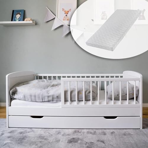 Matelas enfant Aurora avec tiroir réglable, matelas mat blan...