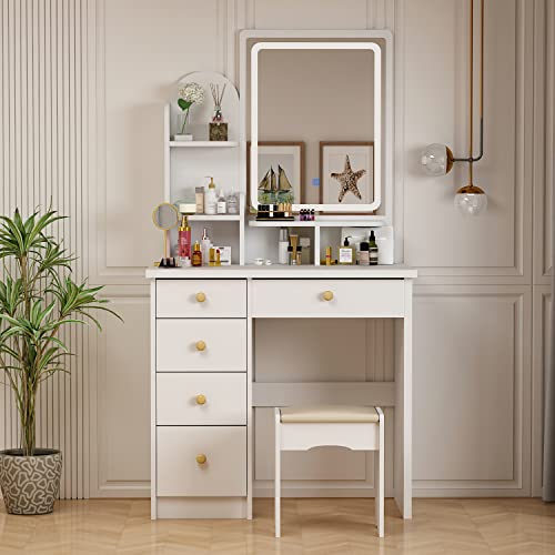PREMTURE Coiffeuse avec éclairage et 5 tiroirs, Coiffeuse av...