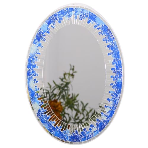 Miroir mural ovale bleu 55/70 cm mosaïque verre bois