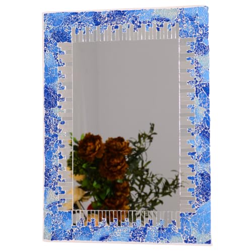 Miroir mural rectangulaire bleu mosaïque bois 60/80cm