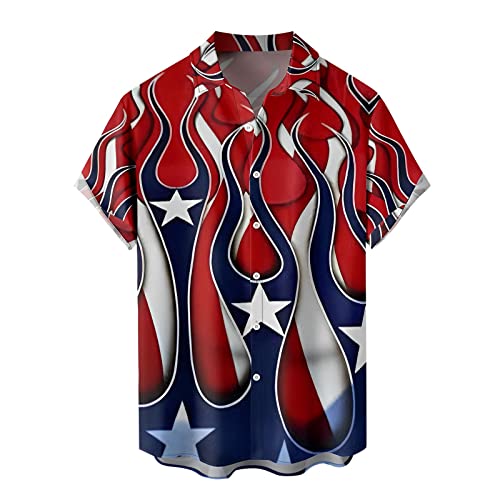 2024 Hommes Drapeau Américain Hawaïen 4 Juillet Chemises 177...