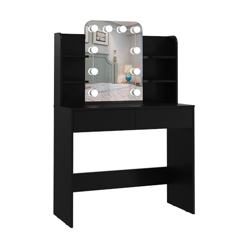 Panana LED Coiffeuse 4 étagères 2 tiroirs Noir