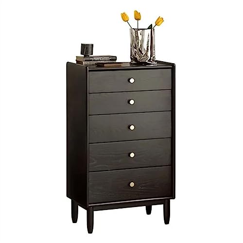 WAOCEM Commode Bois Noir Rangement 5 Tiroirs Chiffonnier