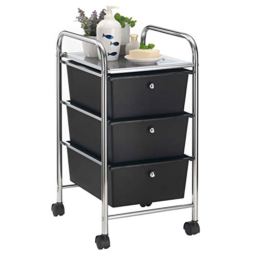 IDexe Caisson 3 tiroirs Noir Plastique Étagère Chariot