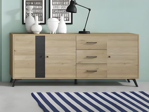 Buffet Portland 3 tiroirs 3 portes Chêne Noir