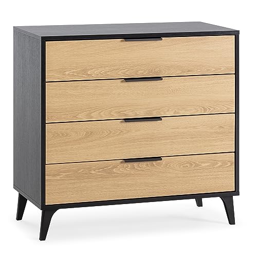 Homme Nuit Commode Kalma 4 Tiroirs Noir Bois