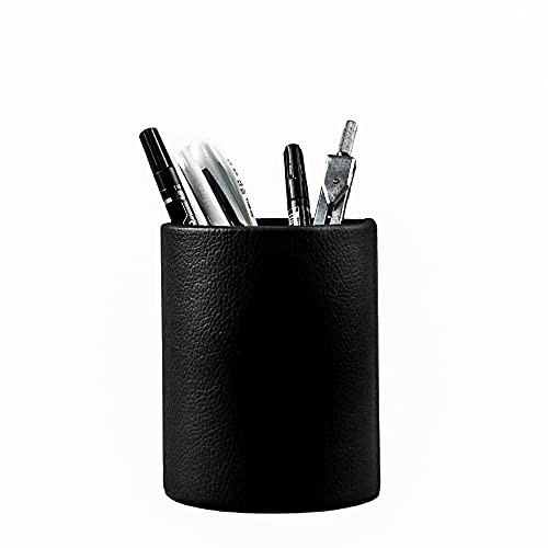 Fosinz Pot à crayons rond en cuir synthétique pour la maison...