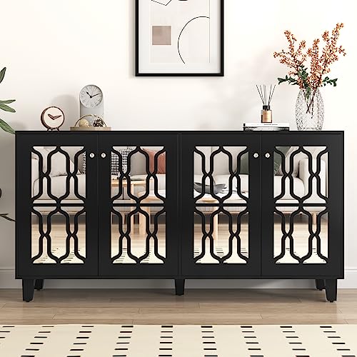 BMT Miroir Noir Buffet avec Quatre Portes et Poignée Cristal...