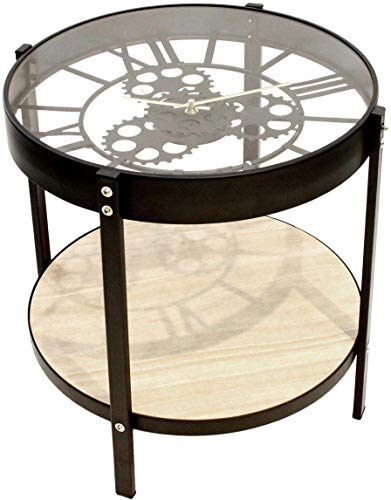 Fabrique HD6446 Table Basse Appoint Ronde Horloge Noir Beige...