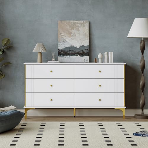 KecDuey Commode 6 tiroirs, blanc/doré, noir, dimensions 140x...