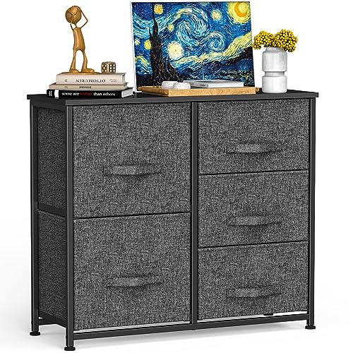 Pipishell Commode Verticale Tissu 5 tiroirs Noir