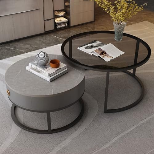 Table Basse Verre, Tiroir Rangement, Lot 2 avec Cadre Métal...