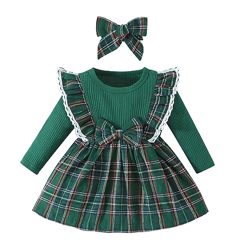 Senoke Robe pour bébé fille - Manches longues - Plaid - Peti...