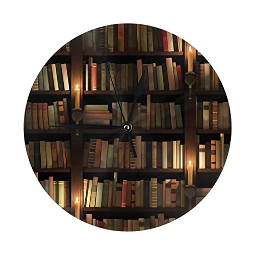 lYonge Horloge murale ronde de bibliothèque de salle de livr...