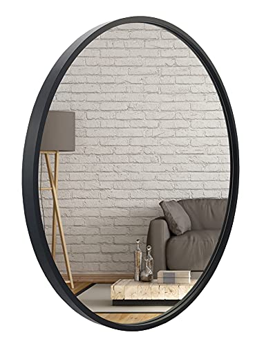 Koonmi Miroir Rond Noir de 50 cm avec Cadre en Alliage d''al...