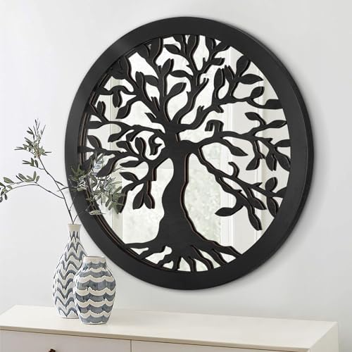 Hanyzcin Miroir Rond Mural Noir, 1 Miroir Décoratif Vintage