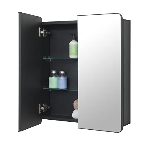 Fondin Armoire Bain, miroir aluminium noir 60x70cm, porte en...