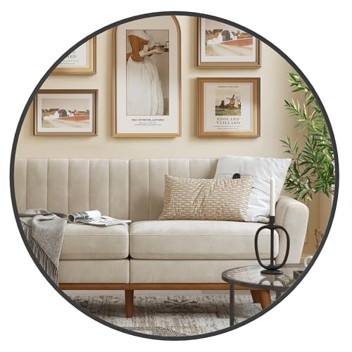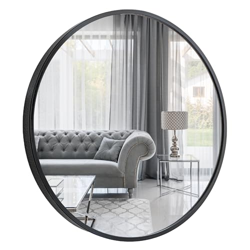 Miroir rond métallique, 61 cm diamètre, noir d'encre LWM102B...