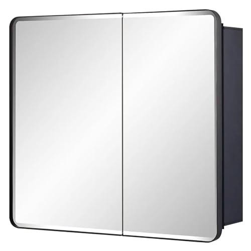 Armoire miroir ronde LED pour salle de bain, rangement noir...