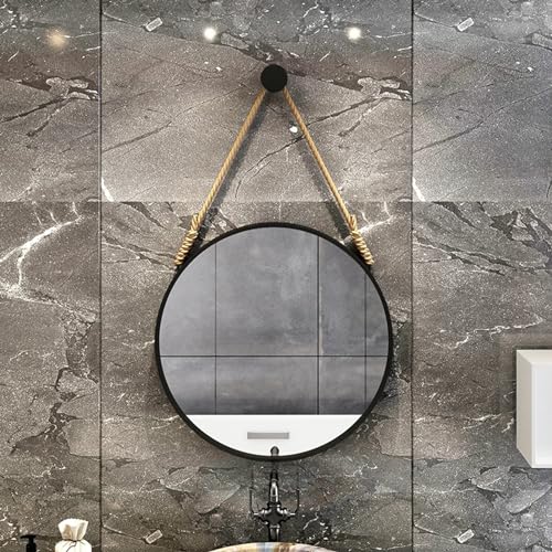 Miroir rond classique à suspendre avec sangle en corde, noir...