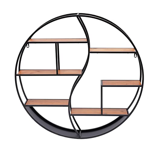 TIXBYGO Étagère murale ronde en bois et métal noir - à épice...