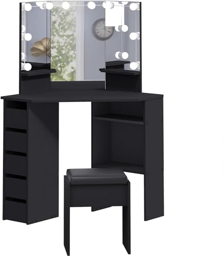 Panana Coiffeuse d''angle avec Lumière LED, Table de Toilett...