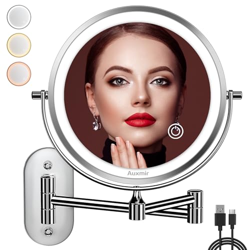 Auxmir Miroir Maquillage Mural Miroir Grossissant x5 Lumineu...