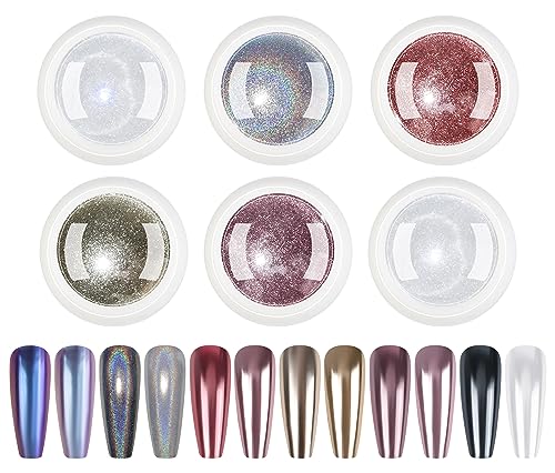 BISHENGYF Poudre Chrome Ongle, 6PCS Poudre Effet Sirene Ongl...