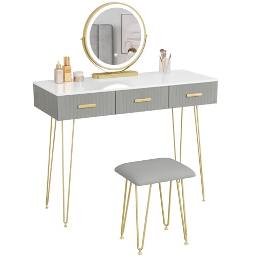 Woltu Coiffeuse LED avec Miroir et Tabouret, Table de Maquil...