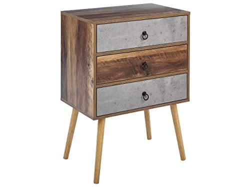 Commode Chiffonnier Bois Foncé Gris 3 Tiroirs
