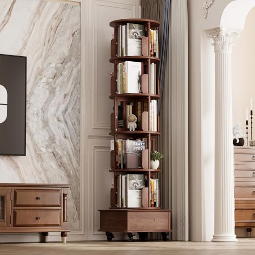Vockol Bibliothèque Rotative en Bois Massif avec 1 Tiroir, B...