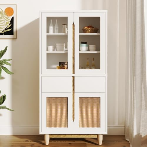 KOMHTOM Vitrine - Buffet avec portes en rotin et portes en a...