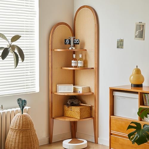 Bibliothèque d''angle en rotin et bois massif, étagère de ra...