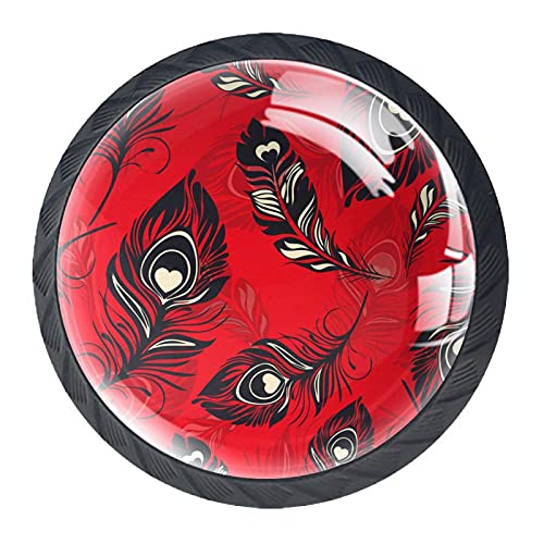 Lot de 4 boutons de tiroir ronds en cristal avec plumes roug...