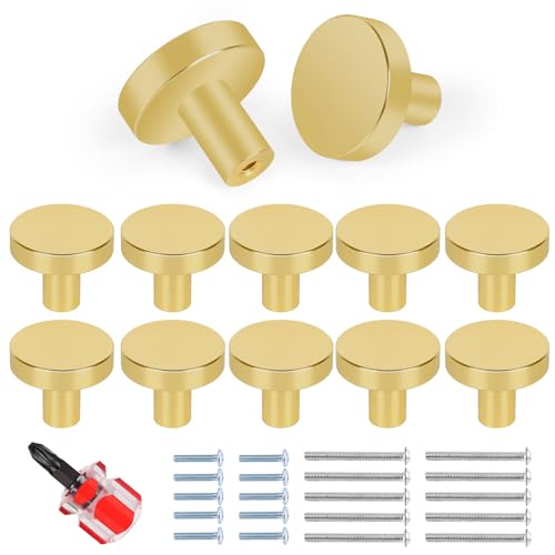 Chuner Lot de 10 boutons d''armoire - En métal - Doré - Rond...