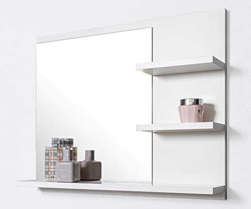 Miroir Salle de Bain Étagère Plateforme Commode Murale Blanc...