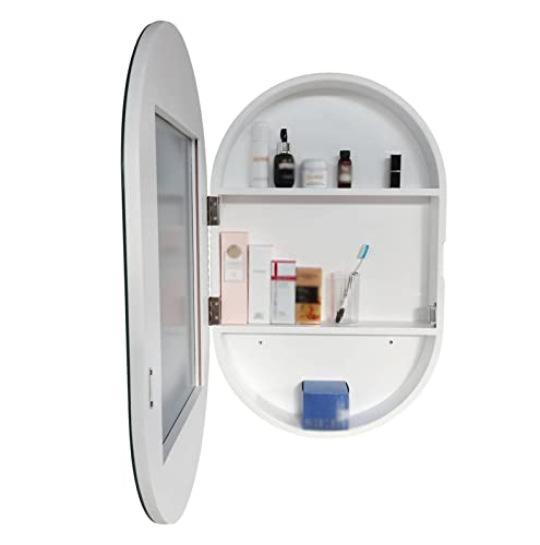 Armoire à miroir ovale en bois pour salle de bain, miroir bl...