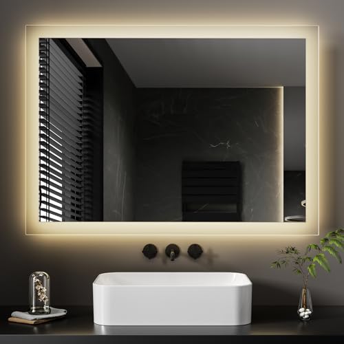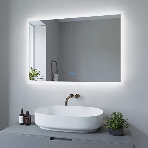EMKE LED Miroir de salle de bain blanc chaud 80x60 cm