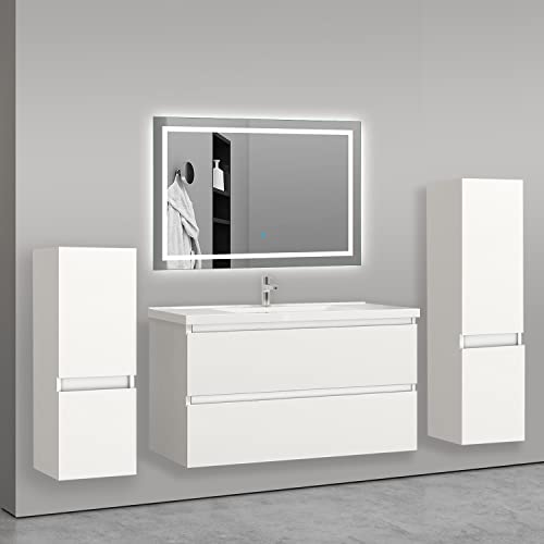 Kiamami Meuble de Salle de Bain avec tiroirs 100cm, lavabo e...
