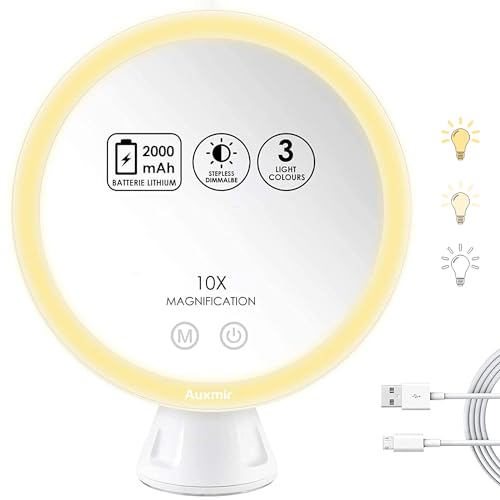 Auxmir Grossissant Miroir Maquillage x10 avec Lumières LED M...