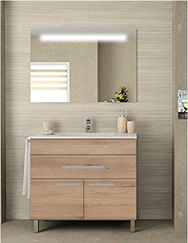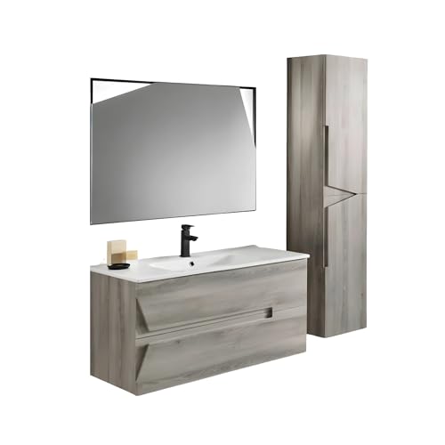 Kiamami Meuble de Salle de Bain avec tiroirs 100cm, lavabo e...