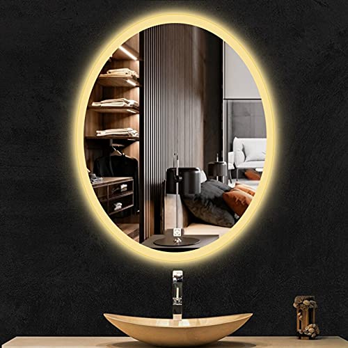 Miroir Salle de Bain Ovale LED Métal, Miroir Éclairé Rétroéc...