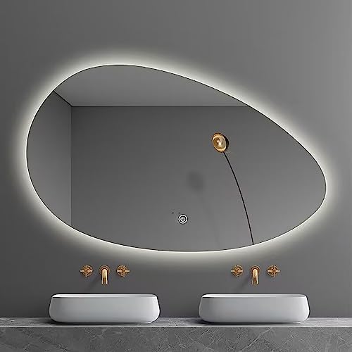 Miroir LED ovale irrégulier, 500 x 700 mm miroir de salle de...