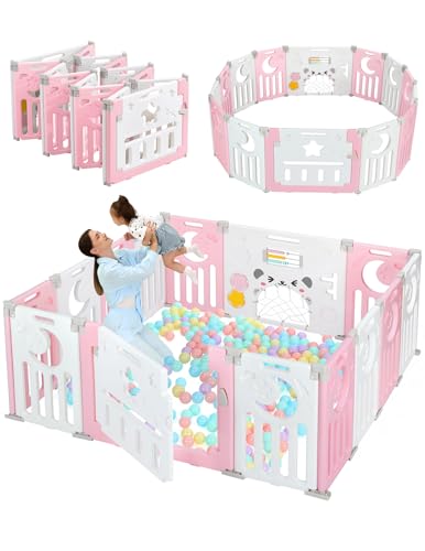 Dripex Parc Modulable Bebe Plastique Rose Blanc 150x150CM
