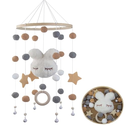 Mobile Bebe Lapin Étoilé Carillon Bois Boule Fourrure