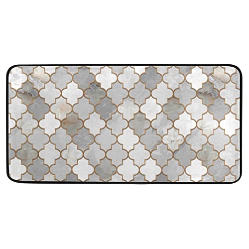 Tapis de cuisine traditionnel gris doré, couloir antidérapan...